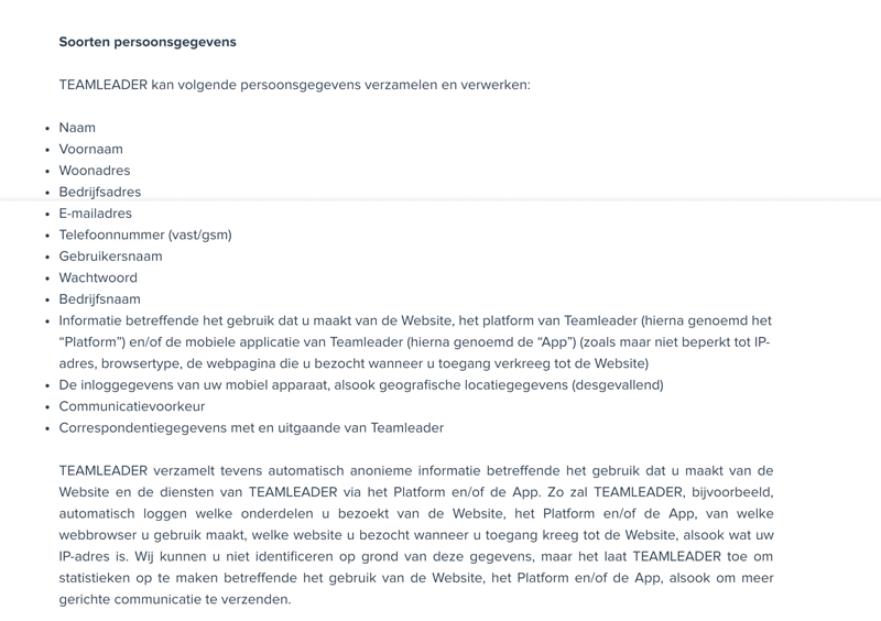 Een goed voorbeeld van zo'n privacyverklaring? Kijk 's naar die van teamleader: