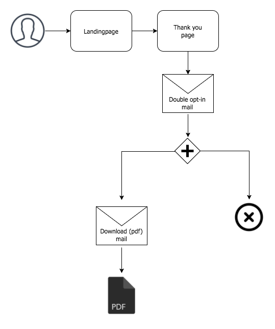 Wat de double opt-in procedure doet met een nieuwe lead? Die moet eerst een confirmatie geven vooraleer de mail met de downloadlink gestuurd kan worden.
